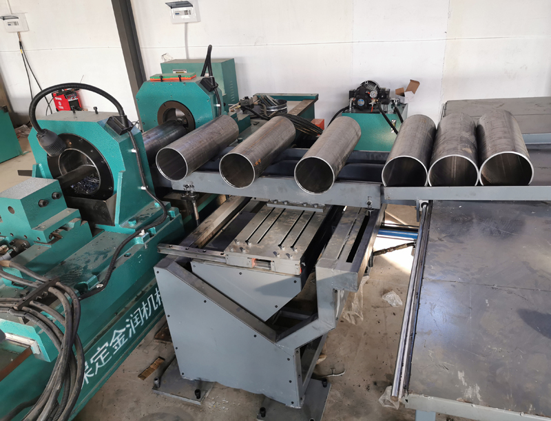8、高配機型帶有自動供料系統(tǒng)(另行單獨選購),普通工人(或女工,無需有任何專業(yè)技能)只需要將多根管料擺放到自動供料系統(tǒng)的料架上,設(shè)備即可自動完成  進(jìn)料→加工→出料的工藝循環(huán),只需一人即可看顧切管機和車孔機床兩臺設(shè)備,工人勞動強度低,無需人工值守,為企業(yè)增加經(jīng)濟效益。